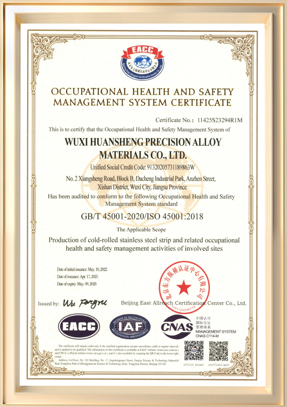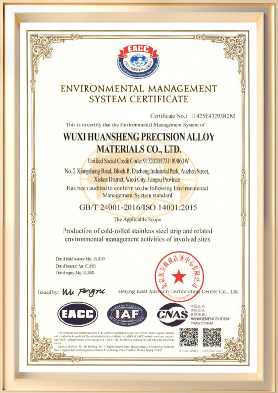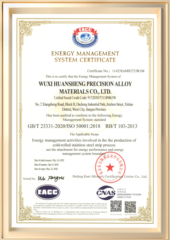 Wuxi Huansheng Precision Alloy Materials Co., Ltd. ก่อตั้งขึ้นในปี พ.ศ. 2544 (เดิมชื่อ Wuxi Huansheng Metal สินค้า Co., Ltd.) เป็นผู้ผลิตเฉพาะด้านที่เกี่ยวข้องกับการวิจัยและพัฒนาและการผลิตแผ่นเหล็กสเตนเลสรีดเย็น บริษัทมีทุนจดทะเบียน 60 ล้านหยวน และพื้นที่โรงงานประมาณ 45,990 ตารางเมตร โดยมีกำลังการผลิตสูงถึง 72,000 ตันต่อปี ความหนาของผลิตภัณฑ์ของเรามีตั้งแต่ 0.03 มม. ถึง 3.0 มม. โดยมีความกว้างสูงสุด 650 มม. ด้วยการสนับสนุนจากทีมงานด้านเทคนิคที่แข็งแกร่งและระบบการจัดการที่ทันสมัย บริษัทจึงได้รับการรับรองระดับสากลหลายรายการ รวมถึง ISO 9001, ISO/TS 16949 และ ISO 14001